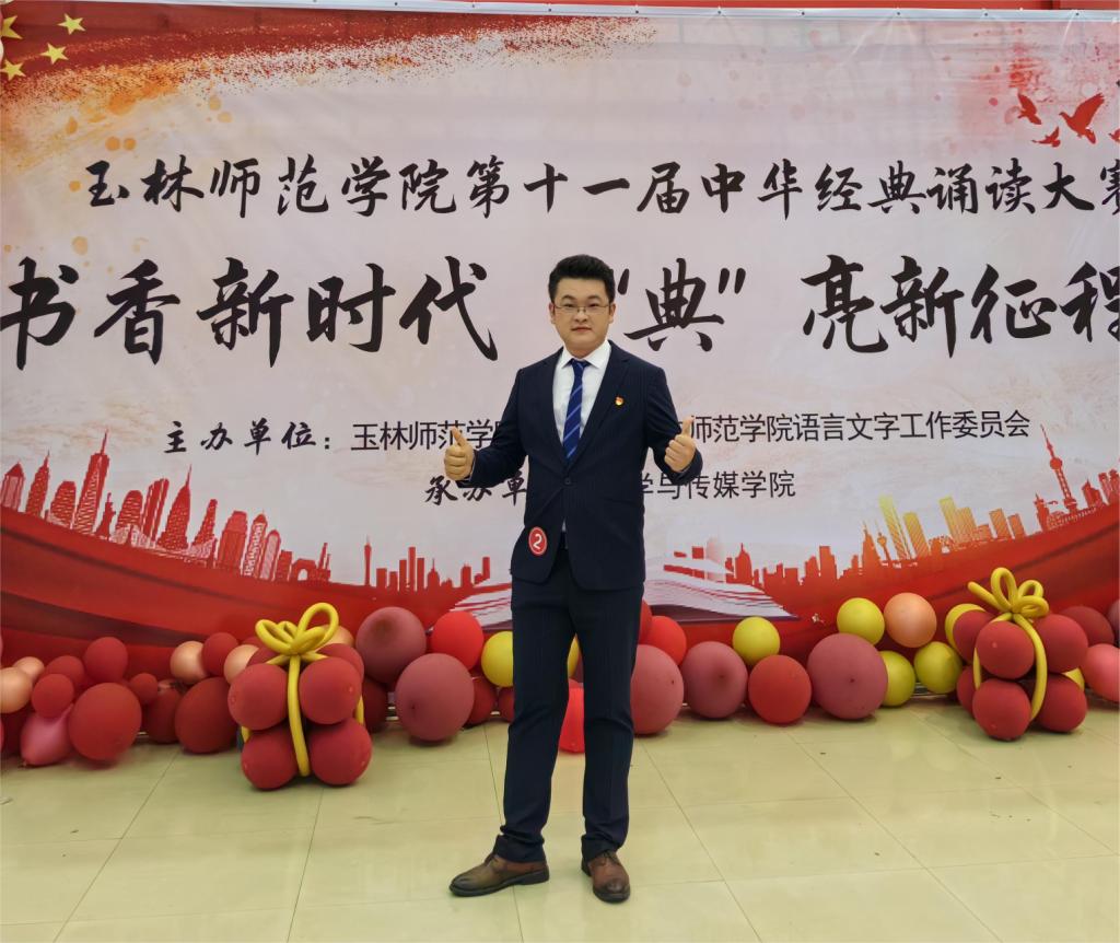在玉林师院这片沃土上,周向阳老师心怀感恩,从不计较个人得失。虽然平时的工作很忙,但凭着对教育事业的热爱,用心浇灌,用爱付出的精神。周向阳老师积极参加各项技能比赛,荣获广西区第九届中华经典诵读大赛大学教师组一等奖;太阳成集团tyc122ccvip第八届、第九届、第十届、第十一届中华经典诵读大赛一等奖;太阳成集团tyc122ccvip“园丁杯”板书大赛特等奖;太阳成集团tyc122ccvip红色故事大赛二等奖;全国青少年书画大赛优秀辅导教师;太阳成集团tyc122ccvip“优秀共产党员”、太阳成集团tyc122ccvip“优秀班主任”等诸多荣誉称号。