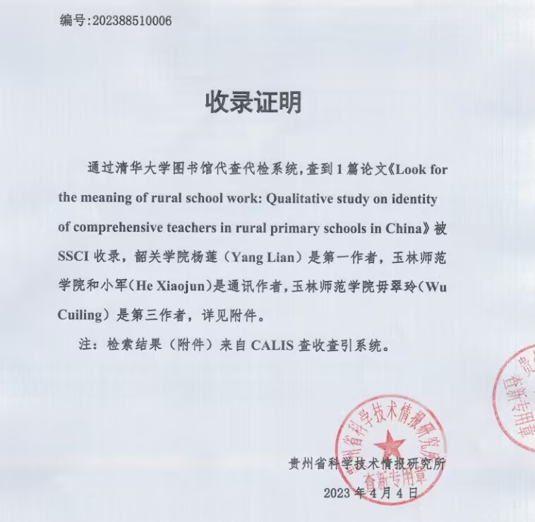 图6:和小军老师的论文《寻找乡校工作的意义:全科初任教师职业身份认同的质性研究》(2023年)