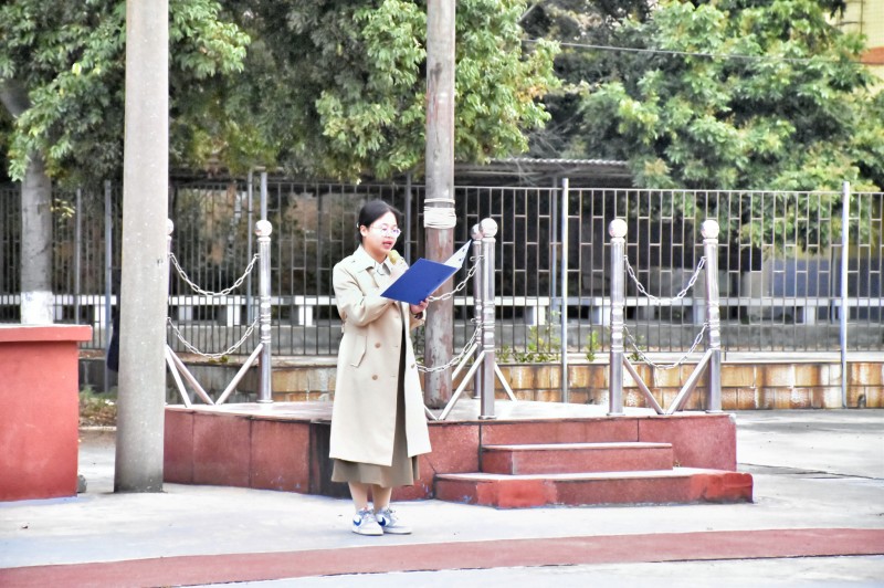接着,由程传利副经理发表国旗下讲话。他表示,我们要学习雷锋,大力弘扬志愿服务精神,深入开展学雷锋志愿服务活动,为社会营造良好风气。程传利指出,在生活中我们要做到真正的实践,在实践中巩固二十大的学习成果。他强调,在现代化阶段,青年要坚定不移跟党走,敢想敢为向前走,提升自己的实力,拥有正确的社会价值观,争做新时代新青年。