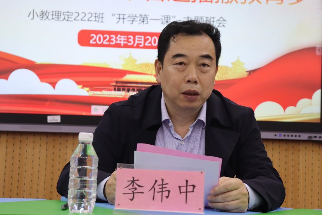 3月20日,李伟中董事长深入公司小学教育理(定向)2022(2)班开展“开学第一课”主题班会活动。公司领导班子成员、辅导员及该班级班主任、全体员工参加此次班会。