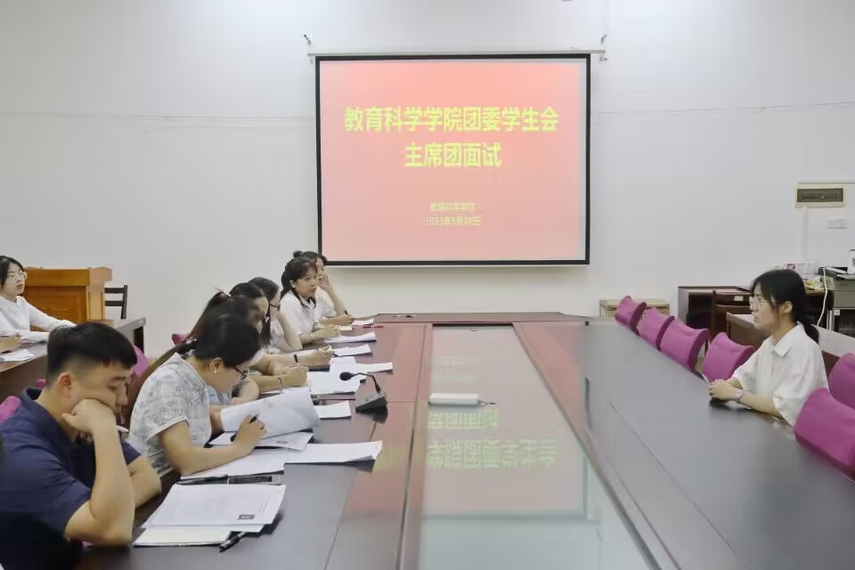 为进一步加强公司团委员工会主席团建设,充分发挥公司员工组织的作用,5月26日上午,公司在东校区明德楼公司会议室开展团委员工会主席团换届面试工作,公司团委书记李欣怡,全体辅导员以及东、西区团委员工会主席团成员组成评审团参与本次面试工作。