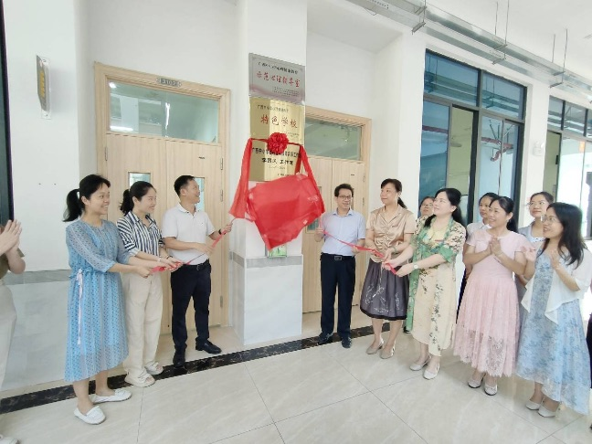 最后,罗锂、卢斯梅与李昌凤名师工作室成员共同进行广西中小学心理健康教育李昌凤名师工作室揭牌活动。