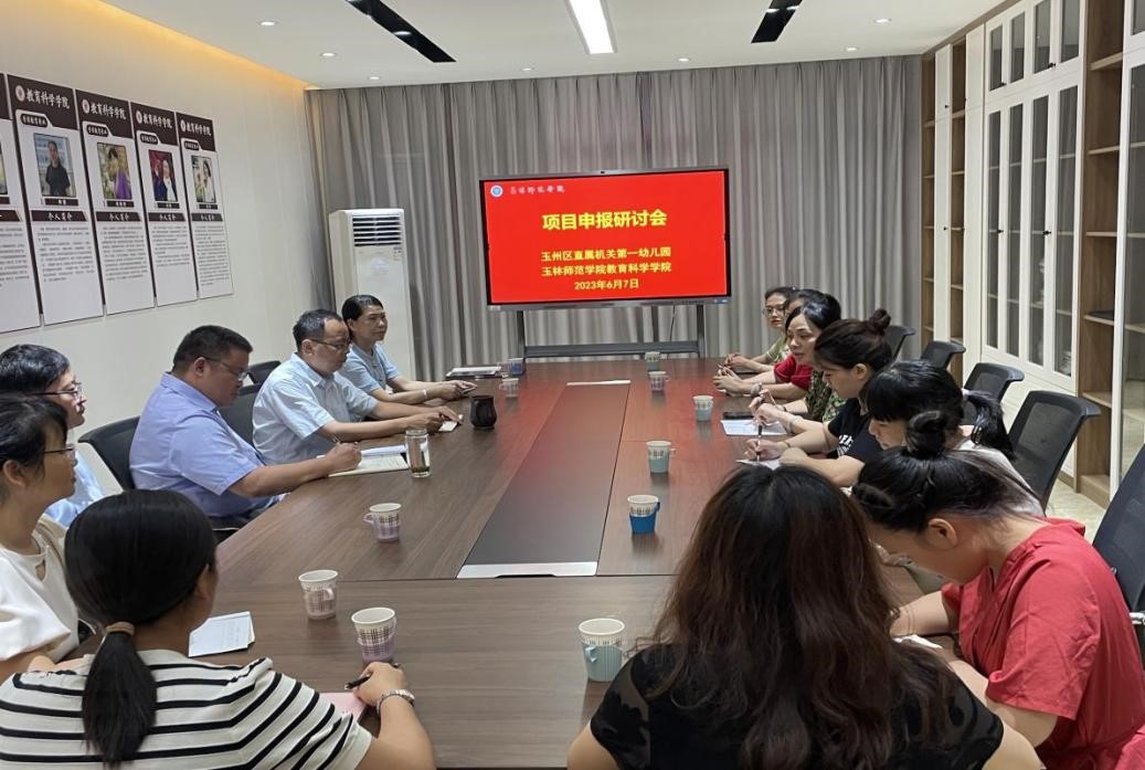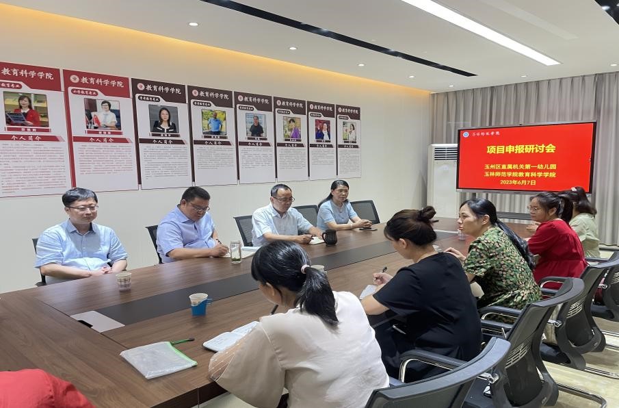 6月7日下午,公司与玉州区直属机关第一幼儿园于公司东校区明德楼408会议室召开项目申报研讨会,玉州区直属机关第一幼儿园园长卢剑萍、课题组成员,公司经理陈庆文、副经理谢清理、金康彪以及学前教育专业教师代表参加此次研讨会。