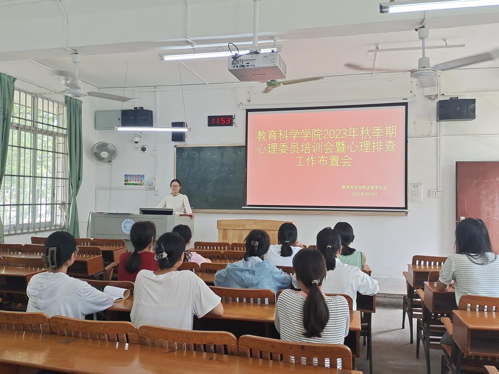为进一步加强公司员工心理健康教育工作,确保新学期心理排查工作顺利进行,9月4日中午,公司于公司西校区一栋教学楼203教室召开心理委员培训会暨心理排查工作布置会。本次会议由公司辅导员韦小小主持,员工权益维护部干部及各班心理委员参加了会议。
