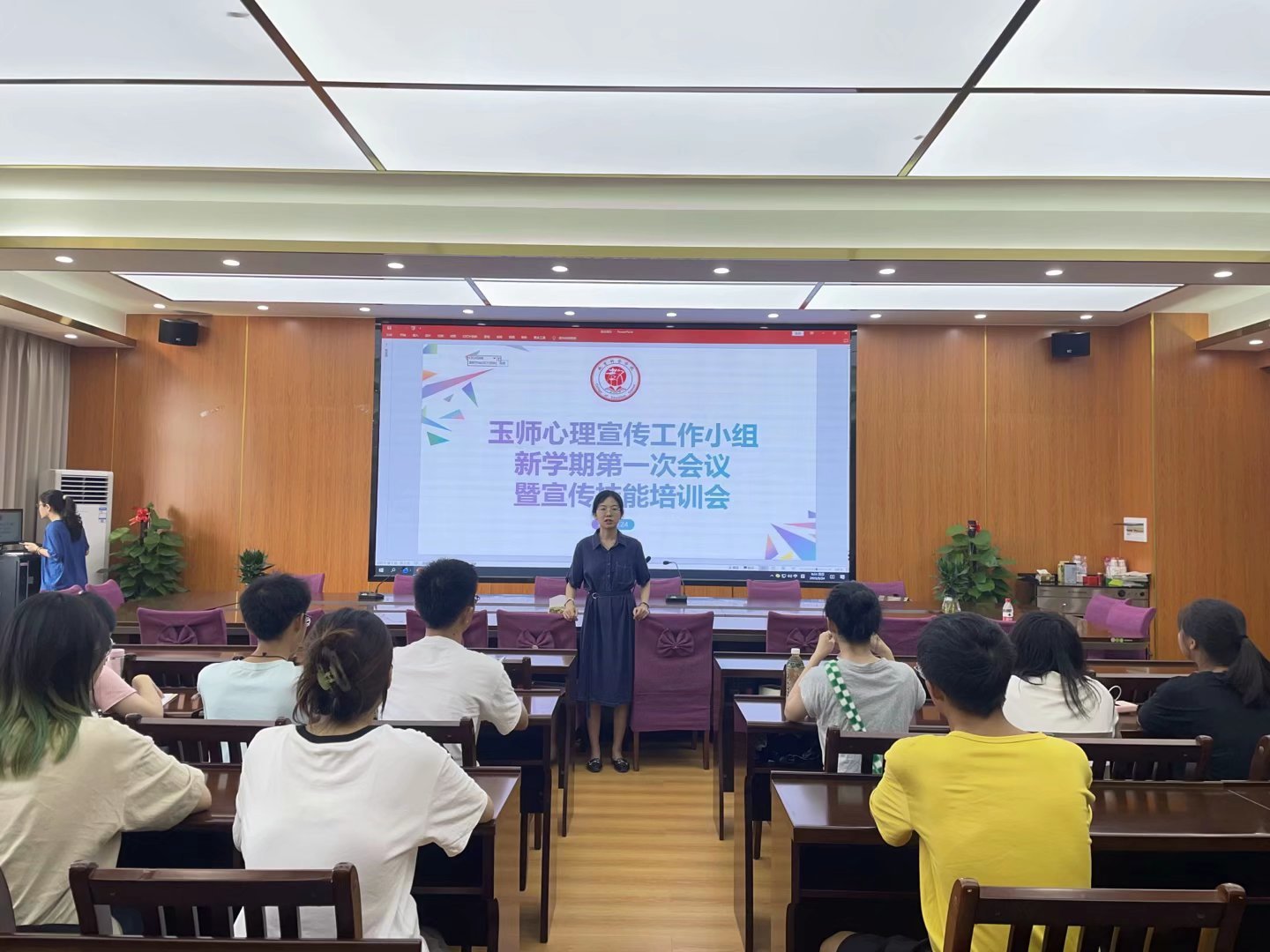 为提高玉师心理宣传工作小组写作能力,加强公司员工对新闻重视程度,9月24日上午,公司玉师心理宣传小组于明德楼公司会议室开展本学期第一次会议暨技能培训会。本次培训会由公司应用心理学系主任罗锂主讲,公司教师杨婕主持,玉师心理宣传小组成员参加。