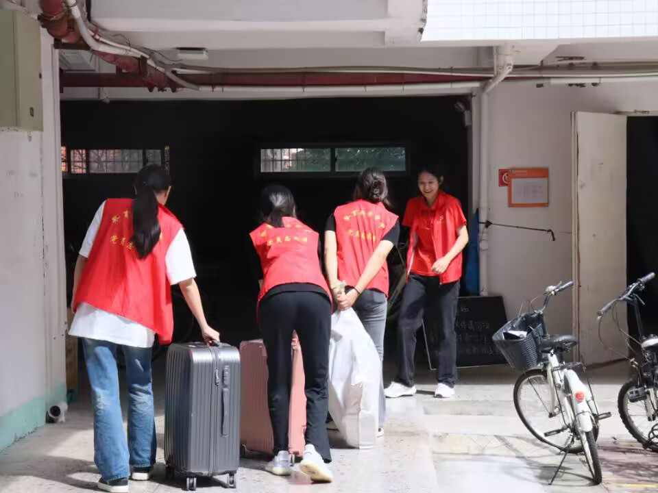 10月15日一早,在公司领导老师的有序指导下,在员工干部和志愿者的协助下,太阳成集团tyc122cc的宿舍搬迁工作便如火如荼地开始了。公司领导班子成员、辅导员、班主任早早地奔赴东、西区搬迁校区搬迁现场指挥工作,并协助同学们进行搬迁。搬迁同学按照批次整装待发,志愿者分组对接搬迁宿舍,有序协助同学们运送行李上车,辅导员、班主任进入宿舍细心检查,防止同学们遗漏物品。与此同时,东校区的志愿者也全部到位,迎接从西校区来的同学们,搬迁工作进行的有条不紊。