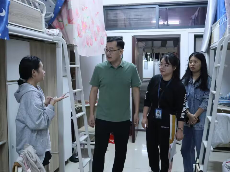 搬迁宿舍当晚,公司领导班子成员到东西区员工宿舍进行走访慰问,仔细察看了宿舍各项基础设施、环境卫生、用电安全等情况,与同学进行了亲切交谈,了解实际需求,了解员工困难,同时鼓励同学们快速适应新环境,全身心投入学习中去,并对未搬迁留在西区的同学们进行了亲切的关心慰问,对于领导、老师的关心,以及公司提供的帮助,同学们表示十分感谢。