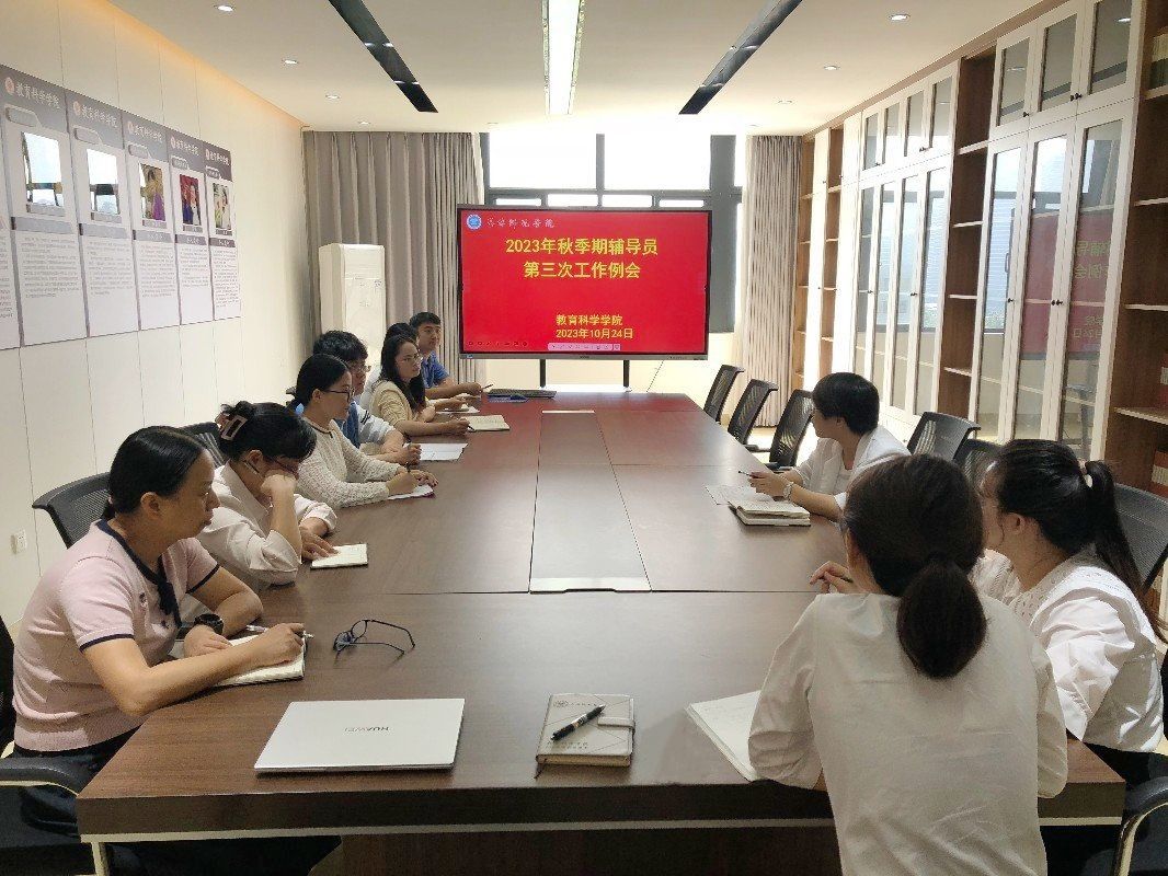 10月24日,公司在明德楼408会议室召开2023年秋季期辅导员第三次工作例会,该公司党委副书记李尚芳以及全体专、兼职辅导员参加此次会议。