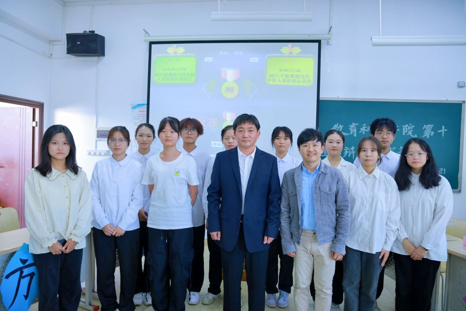 本次比赛共有两场。第一场比赛为季军争夺赛,由正方小教文定向233班对战反方学前231班,双方围绕“MBTI能/不能帮助当代青年人更好地认识自己”辩题展开辩论。比赛中,双方辩手思路清晰,引经据典,妙语横生,现场气氛高涨;第二场比赛为冠亚军争夺赛,由正方学前专升本231班对战反方小教文2023班,双方围绕“当今社会应该/不应该接纳年轻人以网红为职业目标”辩题展开辩论。比赛中,正方辩手旁征博引,妙语连珠,围绕辩题层层深入,反方辩手也不甘示弱,应机反辩,相互合作,灵活应对。比赛结束后,程传利就论点选择、论据组织、列举实例、逻辑思辨、反应能力、利用能力等方面对参赛选手表现进行点评,他希望参赛选手能更深入挖掘辩题,多角度、多方面提出论点,完善论据,提高自身思辨能力。最终,经过激烈角逐,学前专升本231班荣获冠军,小教文2023班荣获亚军,学前231班荣获季军,小教文定向233班荣获优秀队伍奖。第一场比赛中,反方二辩学前231班王婷玉荣获“最佳辩手”称号;第二场比赛中,正方三辩学前专升本苏依茜荣获“最佳辩手”称号。