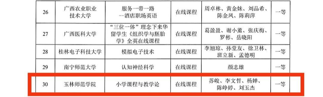 近日,第二十二届广西高校公司产品信息化大赛获奖名单揭晓,公司教师苏峻、李文哲、杨婵、陈峥婷、刘玉杰团队的参赛作品《小学课程与教学论》荣获全区一等奖。