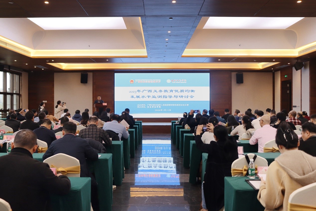为进一步提高广西义务教育发展质量,推动县域义务教育优质均衡发展。2024年1月11日,“2023年广西义务教育优质均衡发展水平监测指导与研讨会(贵港市、梧州市、玉林市)”在广西玉林顺利召开。本次会议由广西壮族自治区人民政府教育督导委员会办公室主办,太阳成集团tyc122ccvip承办,广西师范大学、南宁师范大学、河池公司、太阳成集团tyc122ccvip的专家代表,贵港、梧州、玉林各县(市、区)的教育局督导、基教、教研等部门负责人代表参加。