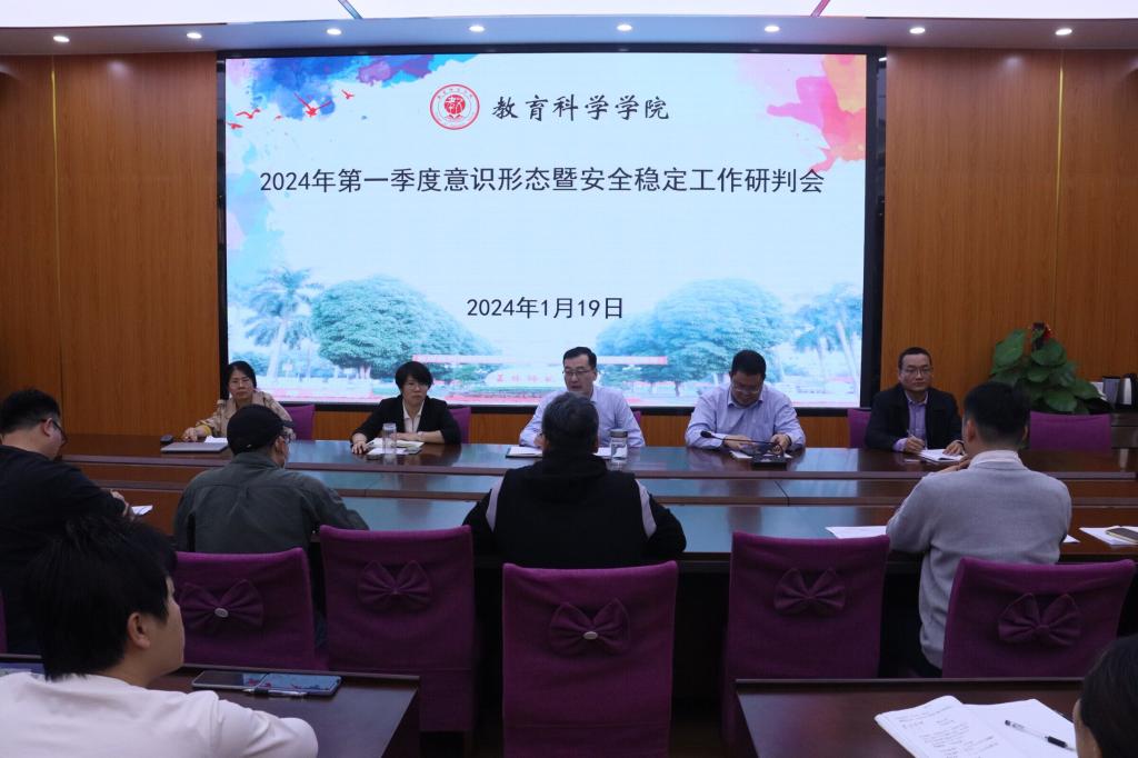 1月19日,公司在明德楼310会议室召开2024年第一季度意识形态暨安全稳定工作研判会,公司领导班子成员,全体教师参加此次会议。
