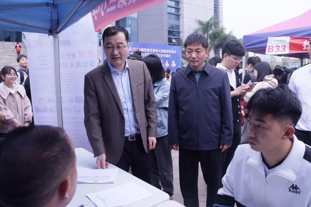 3月22日上午,玉林市人力资源和社会保障局于公司东校区读书广场、新民楼景观大道举办2024届毕业生春季大型就业双选会,公司领导班子成员及毕业班班主任深入招聘会现场指导毕业生就业工作。