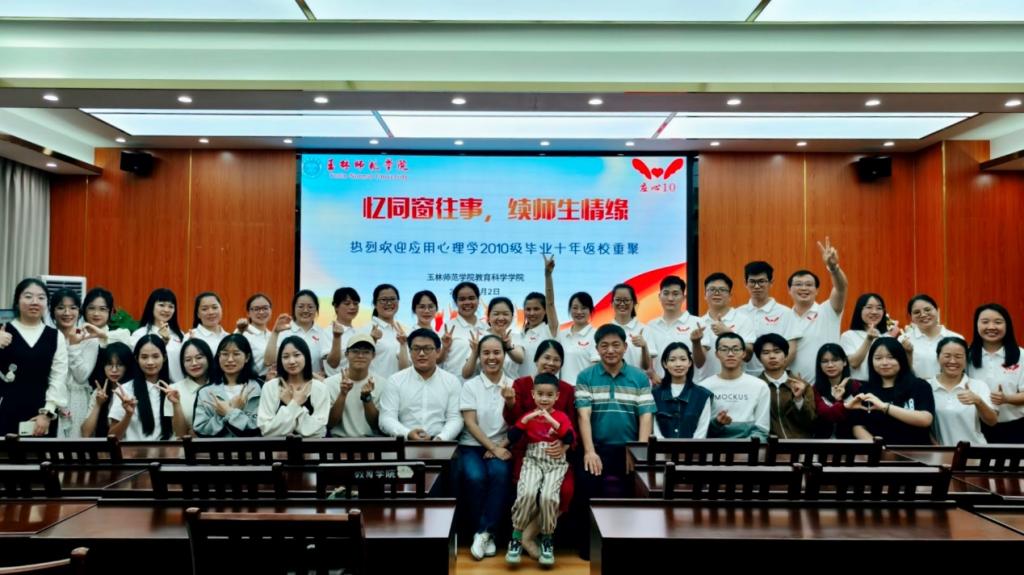 桃李归来日,校园满庭芳,为凝聚员工,进一步展现办学成果,追忆往昔时光。5月2日,公司举办了“忆同窗往事,续师生情缘”为主题的2010级应用心理学专业毕业十周年返校活动。公司经理陈庆文,副经理程传利、杨振芳及教师代表参加活动。