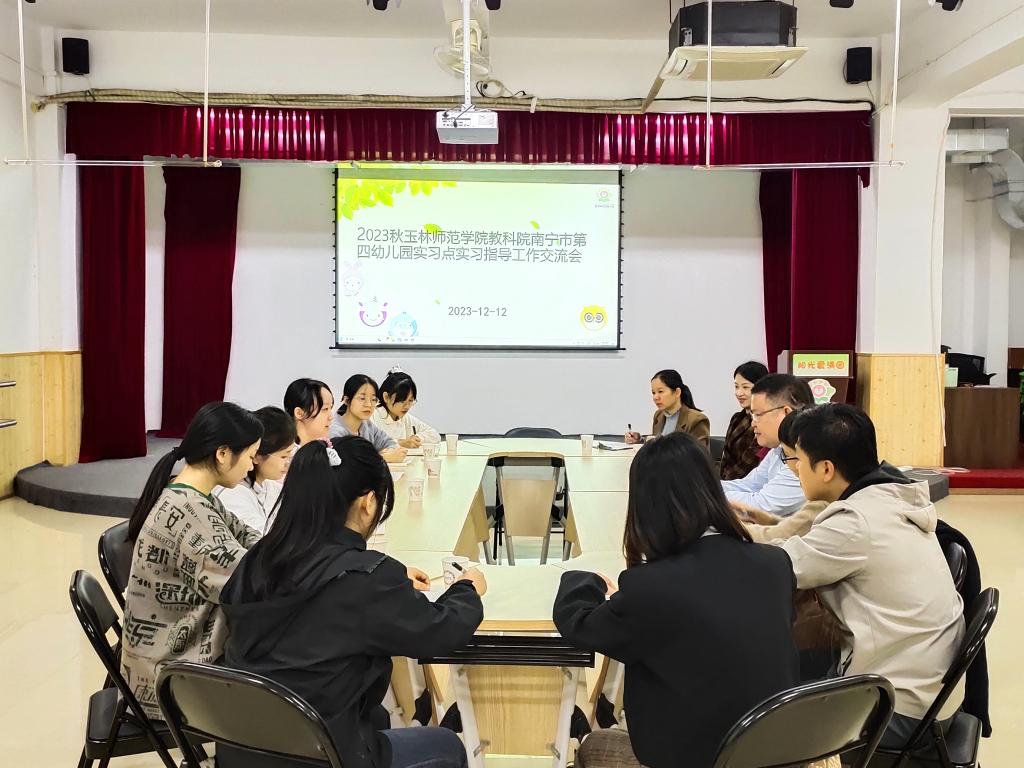 为推进公司实习工作顺利开展,全面了解实习生工作与生活情况,12月12日,公司经理陈庆文带队赴南宁市第四幼儿园英华分园开展实习指导工作,在幼儿园大礼堂同幼儿园主要领导和七名实习生召开实习指导工作交流会。