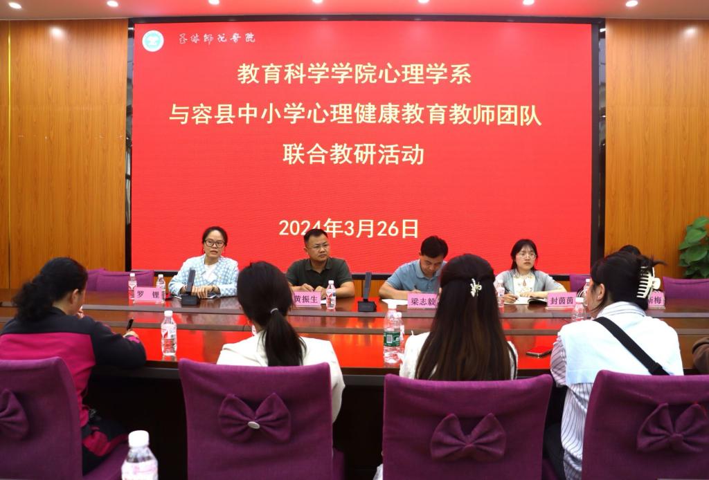 3月26日下午,公司于东校区明德楼310会议室与容县中小学心理健康公司产品团队开展以心理学和中小学公司产品融合为主题的联合教研活动。本次教研活动由应用心理学系主任罗锂主持,容县容州镇都峤中学党支部书记黄振生、容县绿荫中学党总支部书记梁志毅、双方教师代表以及员工代表参加本次联合教研活动。