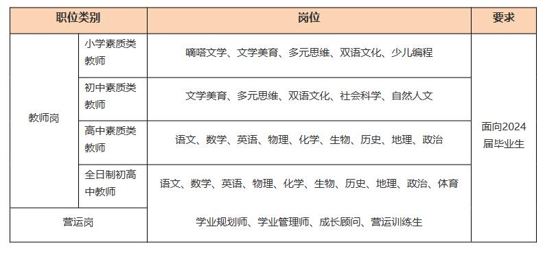 (3)热爱教育行业,学科功底强,坚持一切以员工健康生长为先的理念;持有教团队格证或拥有教学经验者优先;