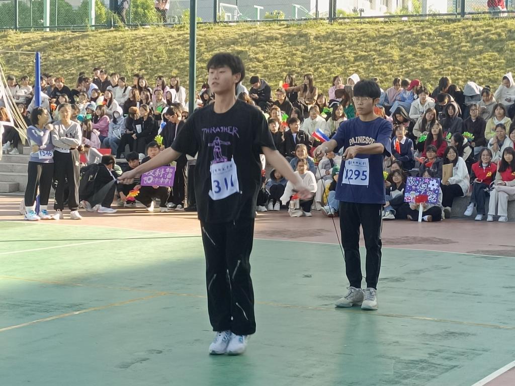 据悉,此次决赛10×30秒跳绳单摇接力落下帷幕。物理与电信工程公司以1076个获得第一名,数学与统计公司以1047个获得第二名,计算机科学与工程公司以1000个获得第三名。
