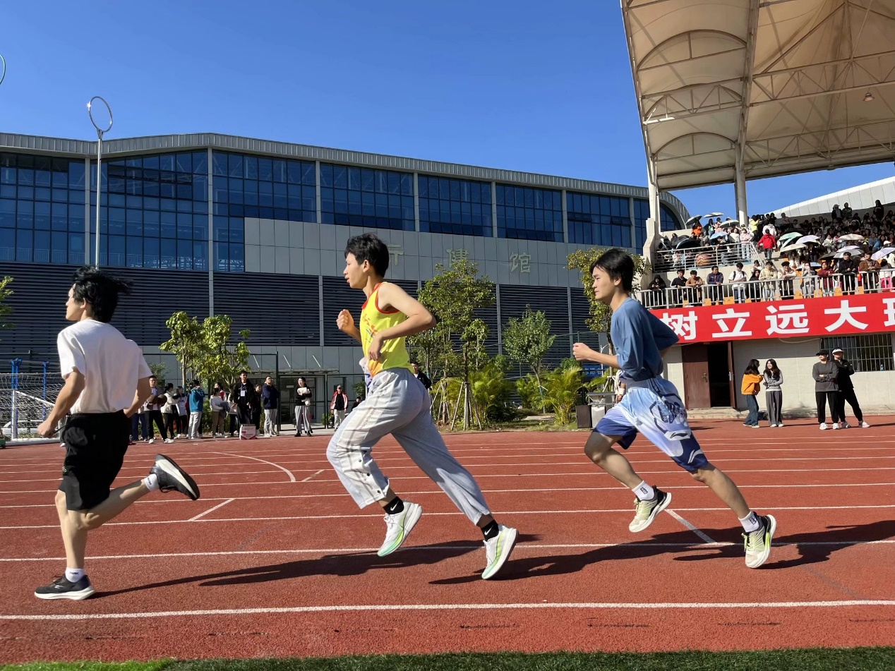 赛前,运动员蓄势待发,眼神坚定,积极进行热身运动,以最佳状态迎接比赛。随着裁判员的哨声响起,比赛正式开始,运动员如同离弦箭冲出起跑线,势如破竹,全力冲刺,参赛运动员们奋勇向前的身姿,突破自我的运动精神,展现出公司学子英姿勃发,不断前行的良好精神风貌。公司参赛运动员杨雄浩如箭在弦,飞刺而出,似鹰长空伟翼直冲云霄,展翅高飞,向胜利的荣耀奔赴;该院参赛运动员何明加不甘示弱,斗志昂扬,争分夺秒,汗水化作动力,加快步伐,奋力向前冲刺。场外观众热情高涨,挥舞手拍,为每一位运动员加油喝彩。
