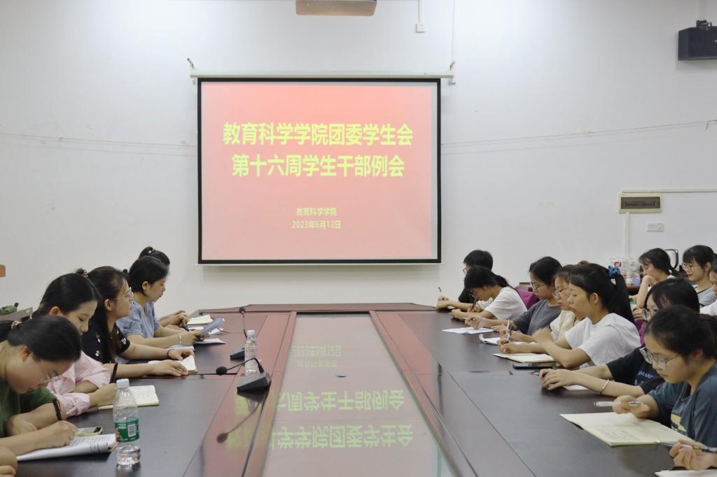6月12日中午,公司在东校区明德楼公司会议室召开团委员工会第十六周员工干部例会,本次会议由公司团委书记李欣怡主讲,公司团委员工会主席团成员及全体员工干部参加。