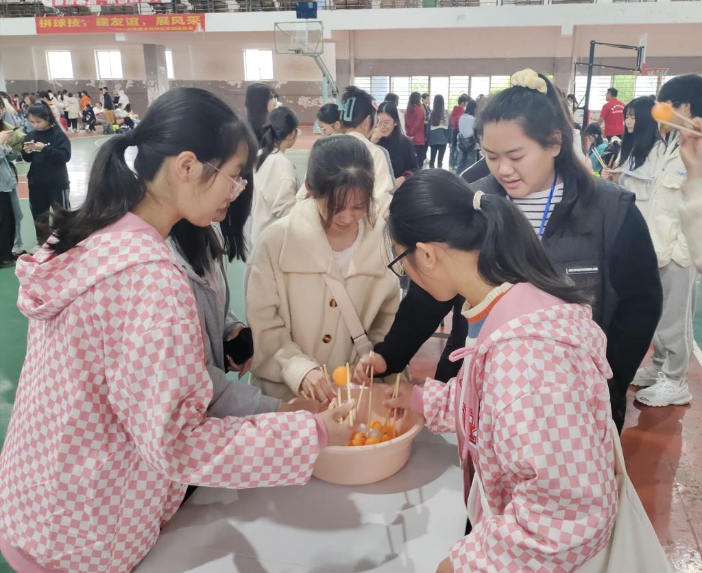 所有活动在一声哨响中有序开场。其中,“探墨寻珠”游戏中,各参赛人员专注寻珠,找准方法,分工合作,配合默契,实现数量多时间短目标;与此同时,在“套圈圈”游戏中,各参赛人员不断调整角度与方向,合理分配圈数量,利用臂长、力大等自身优势套中更多的塔;在另一旁的趣味运动“双龙戏珠”游戏中,各参赛成员谨慎且以极快的速度前行,不断交替换位,力争运输更多乒乓球;在同一时间的“飞纸接力”游戏中,在有限时间内各参赛成员反应迅速、手脚敏捷,快速交替着脚下纸张,每次获胜都充分展现着各参赛成员之间的默契配合。最后,第十二届宿舍文化艺术节趣味运动在欢乐的氛围中落下帷幕。