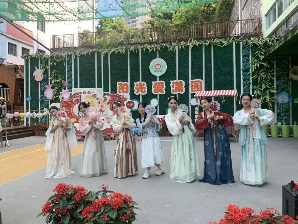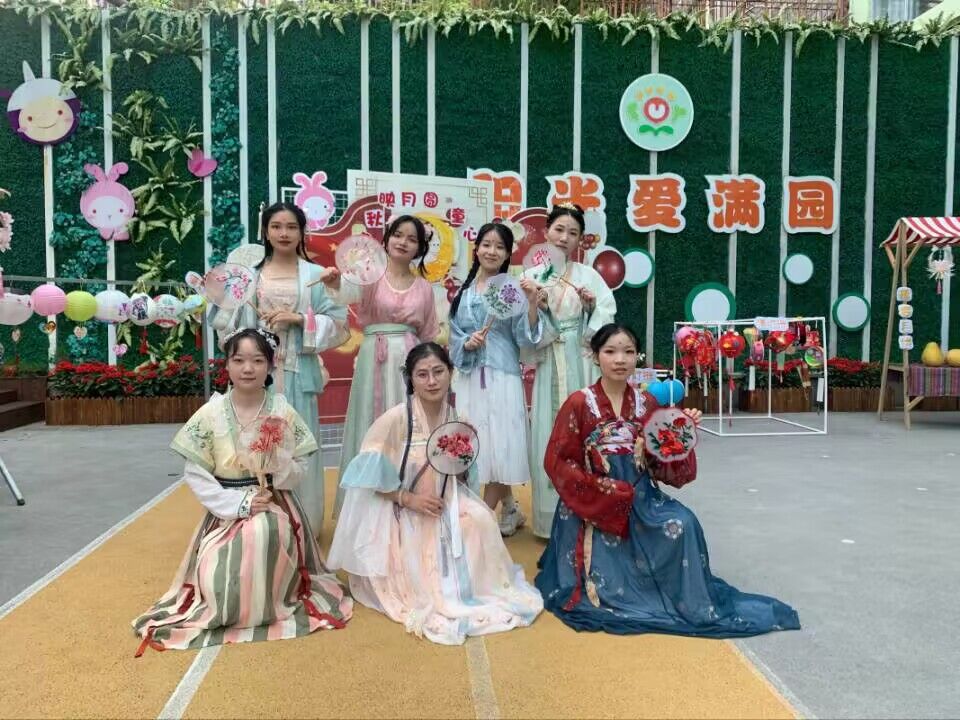 本次活动内容丰富多彩、形式多样,该园中大班组开展制作月饼、评选五星级月饼活动;小班组开展赏花灯、猜灯谜、汉服走秀活动。活动上,公司实习生身着传统服饰,为该园幼儿带来《小城谣》舞蹈作品。随后,公司实习生与幼儿共同参与制作月饼、赏花灯、猜灯谜等活动,让其感受与了解我国传统节日——中秋节,进一步增加其对中秋节浓厚民俗风情的认识。在互动环节中,实习生带领该园全体幼儿共同表演《中秋》手指律动操,学习唐诗宋词,领略中华民族文化的博大精深。最后,该幼儿园主任对本次活动进行总结发言,她表示,今后将继续举办类似活动,让更多孩子了解与传承中华民族优秀传统文化,同时也希望公司实习生共同参与到实践活动,培养其成为优秀教育工作者。