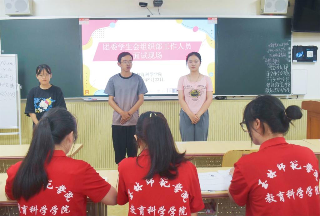 为充实我院员工干部队伍,推动团委员工会工作可持续发展,9月23日晚,公司在东校区明德楼301、302、303、304、305教室分别开展2023-2024届团委员工会招新面试工作。此次招新面试工作由公司团委员工会主席团成员、各部门负责人担任面试官,公司2023级部分员工参加。
