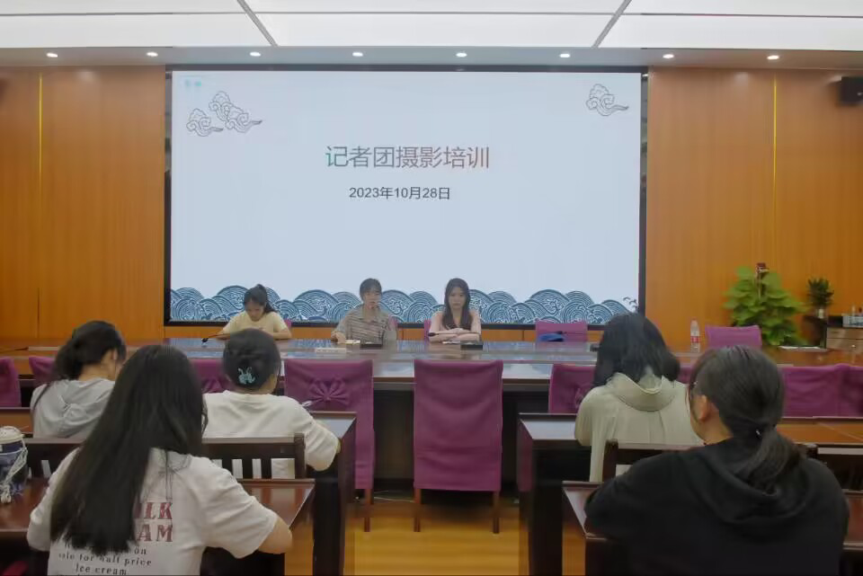 会议共分为写作技巧与摄影培训两部分。会上,韦安妮就“如何撰写稿件”展开详细讲解。她指出,撰写稿件应注意稿件标题设置、写稿格式及稿件内容完整度与准确性;不拘泥于原始材料,推陈出新;注重新闻时效性等。随后,她结合具体案例对相机结构、如何拍照、拍照注意事项和不同场景拍摄四部分进行摄影培训。她强调,摄影应根据拍摄对象及拍摄场景确定正确拍照角度;拍摄过程要使相机处于平稳状态,待对焦成功后方可拍照;拍摄需注意照片结构布局等。最后,梁雨晴对培训内容进行补充说明,希望记者团实习生在日后实践中牢记注意事项,严谨撰稿,灵活运用摄影技巧,勤于训练,善于思考,顺利完成各项任务。
