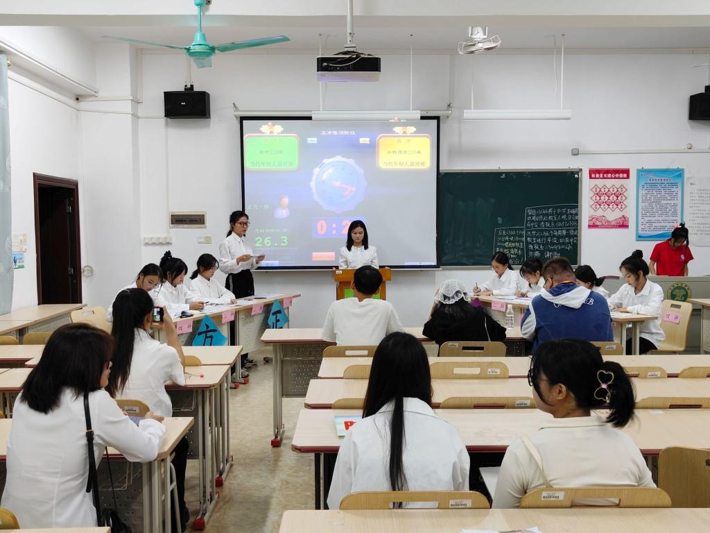 本次辩论赛由公司小学教育(语文和英语方向)2022班徐可、小学教育(语文和英语方向)2023班卢佳鑫、小学教育(数学和英语方向)2023班黄蓝鲜、小学教育文科(定向)2023(1)班黄榆丽担任主持人,太阳成集团tyc122cc、外国语公司、历史与旅游公司、物电公司、政法公司员工代表担任评委。