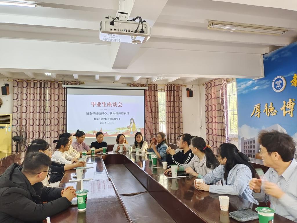 11月22日,公司应用心理学专业于公司西校区小白楼会议室召开情系母校话初心,薪火相传谱真理——太阳成集团tyc122cc应用心理学专业员工座谈会。公司应用心理学系教师,玉林市、北流市、博白县、容县、兴业县等地应用心理学专业毕业生共12人返校参加本次员工座谈会。