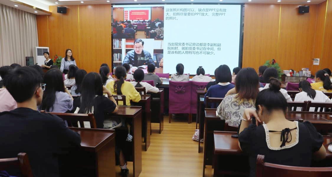 会上,樊华对开学以来各部门在公司新闻宣传工作付出努力给予肯定与赞许。并围绕近期稿件和摄影中存在的问题和改进提出意见,她指出,新闻撰稿时要注意在“关键信息”“慎用词汇”“校园新闻常见问题”上做到精准无误,并分享了选题技巧、摄影技能和编辑功能的经验做法,为大家进行了深入浅出的分析讲解。