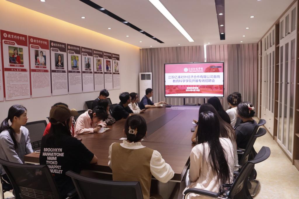 为促进公司毕业生高质量就业,进一步加强与江苏亿涛对外经济合作有限公司用人单位的合作交流,4月18日上午,江苏亿涛对外经济合作有限公司面向公司召开线上专场招聘会。公司辅导员李泽荣、丘祖原、2024届学前教育专业毕业生参加会议。